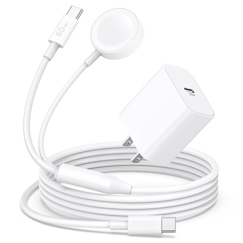 Upgraded 2-in-1 for Apple Watch Charger, 6FT USB-C Fast iPhone 16 15 Charger iWatch Magnetic Charging Cable with 20W Wall Charger Block for iWatch Series Ultra/SE/10/9/8/7/6/5/4/3/2, iPhone 16/15