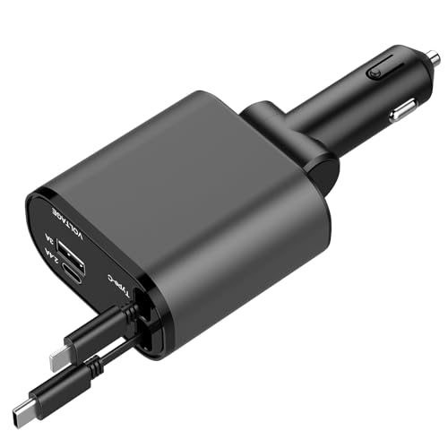 SUPERONE Retractable Car Charger with Retractable Cords, Small Fast Charge Retractable Car Phone Charger for iPhone and Android, Compatible with iPhone 16/15/14/13/12/11 Pro Max Samsung