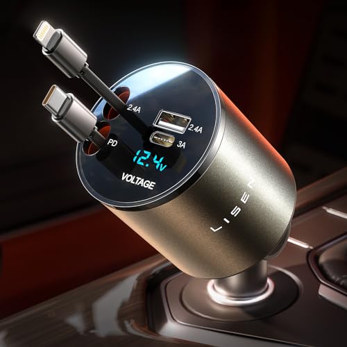 LISEN Retractable Car Charger [69W USB C Car Adapter] for iPhone 16 Car Charger Fast Charging, Gifts for Women Men, Car Organization for iPhone 16 15 14 13 12 Pro Max Plus iPad Samsung S25 24, Gray