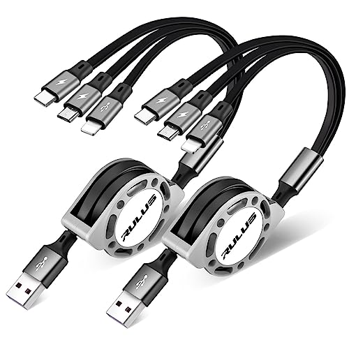 RULUS Retractable Charger 3 in 1 [2Pack,4Ft], Retractable Charging Cable Universal Charger Cable with Lightning/Type C/Micro USB for iPhone,Samsung Galaxy,Tablets,Carplay